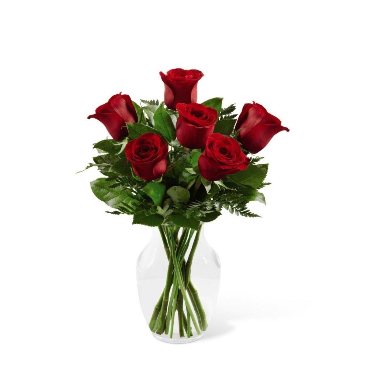 The FTD® Simply Enchanting™ Rose Bouquet brings together lush red roses to make a lasting impression. Gorgeous red roses are simply accented with a variety of fresh greens and perfectly situated in a classic clear glass vase to create a flower bouquet that conveys your hearts deepest desires for love and romance.